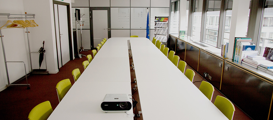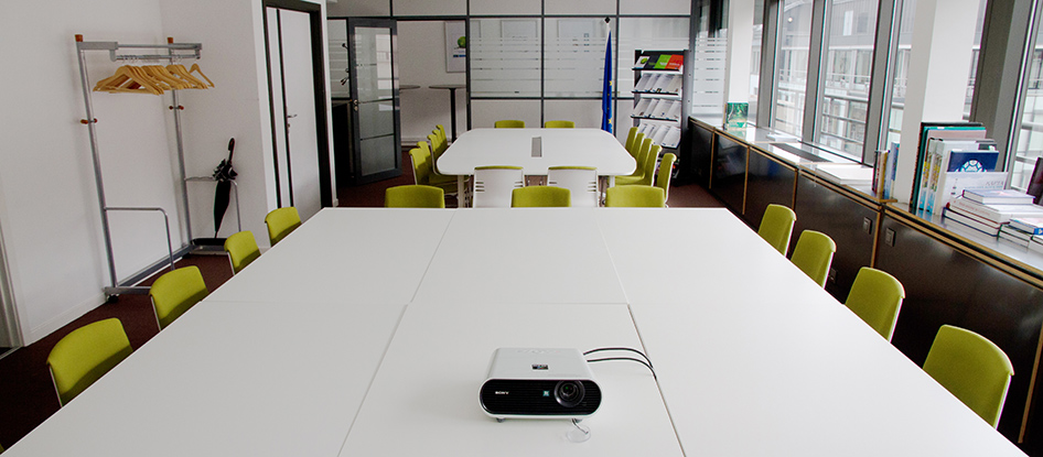 EGS Meeting Room offers a projector, webcam, sound system, flipchart, white board, stationary, coffee and water available at participants’ disposal, as well as the free use of a printer (B/W and color) upon request.