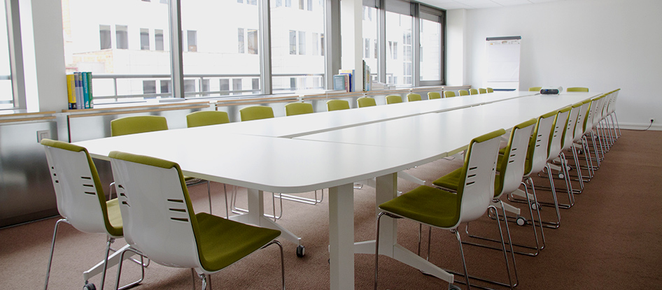 EGS Meeting Room facilities include free Wi-Fi, air-conditioning system, different room settings (the possibility to set the room as boardroom,